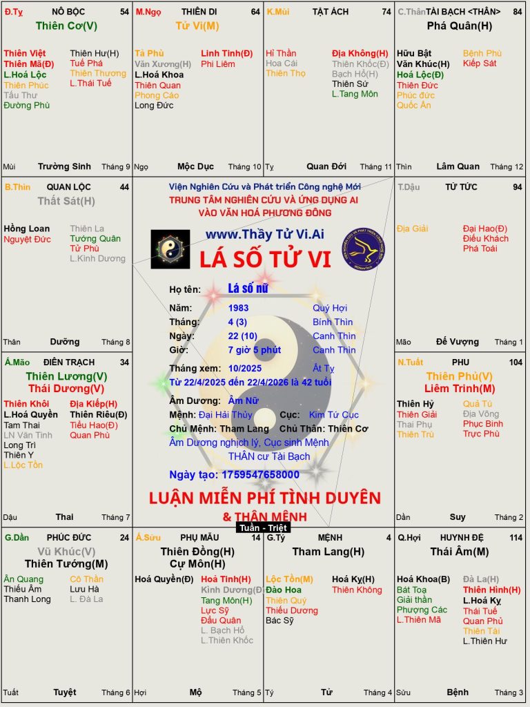 Tử vi AI Thầy Nguyễn Hoàng Trung;
